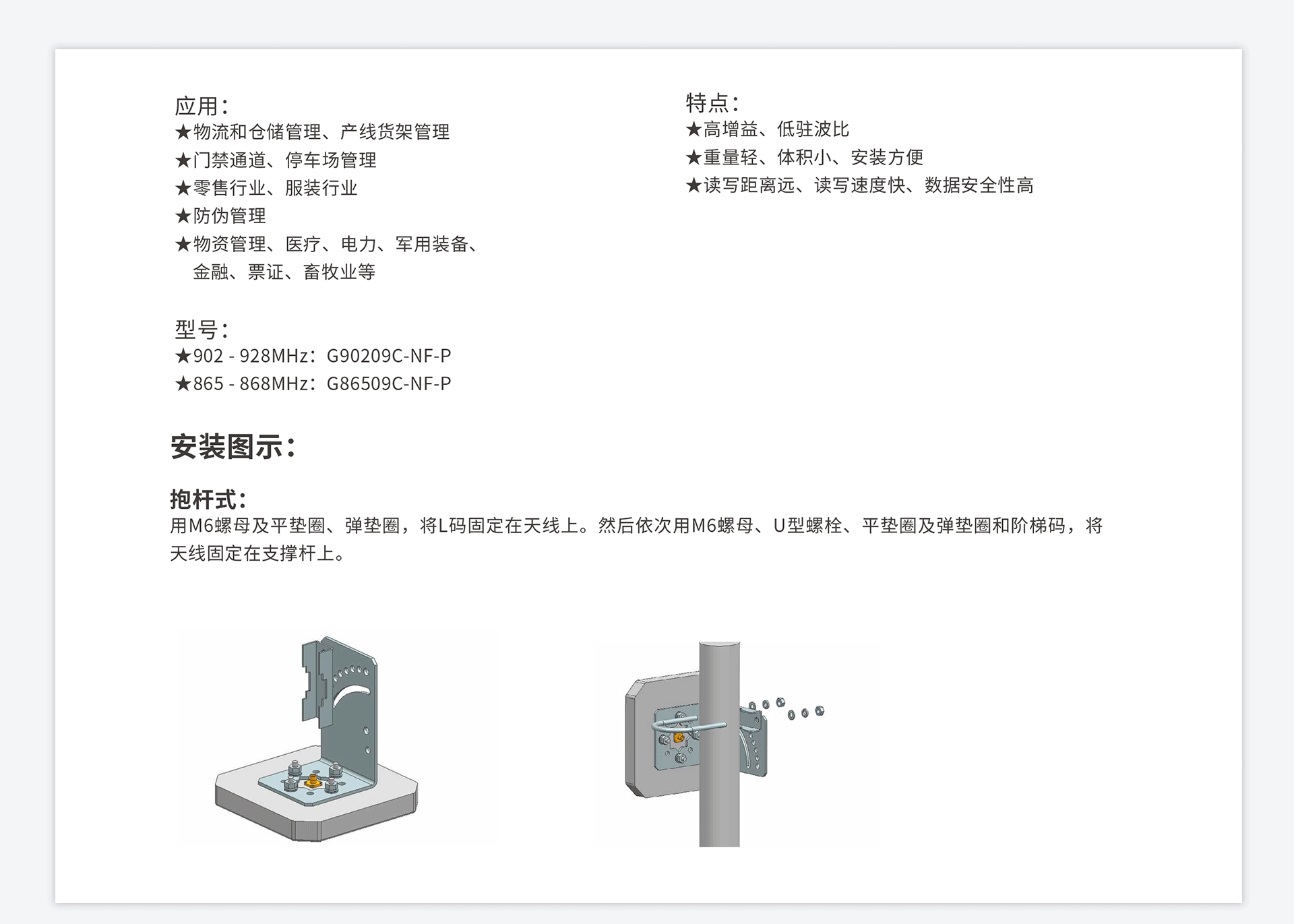 重量輕、體積小、安裝方便 重量輕、體積小、安裝方便 讀寫范圍廣、讀寫距離遠(yuǎn)、讀寫速度快 讀寫范圍廣、讀寫距離遠(yuǎn)、讀寫速度快