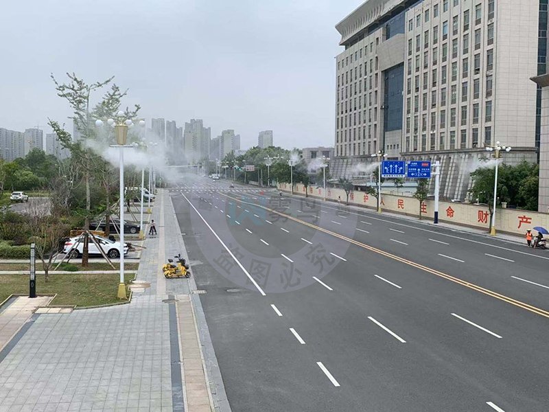 路燈桿噴霧系統(tǒng)利用路燈桿分布廣、密度大、位置固定的特點,充分利用“物聯(lián)網(wǎng)”及“微站”監(jiān)測數(shù)據(jù),有計劃地開展道路降塵,可解決霧炮車作業(yè)面積小、噴灑水珠較大的難題。路燈噴霧系統(tǒng)是利用現(xiàn)有路燈桿加裝噴霧裝置,根據(jù)大氣水霧清洗法原理,以降塵管控區(qū)域設(shè)置高空噴霧點,在局部地區(qū)形成微米X水顆粒帷幕,能有-效降低漂浮空氣中的懸浮顆粒物。